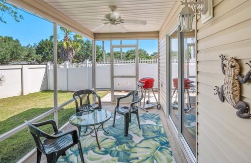 This pet friendly courtyard villa with an open floor plan feels warm and welcoming upon arrival. This beautifully decorated home has all the amenities you need to have an enjoyable relaxed vacation whether a short or long stay. The living room with it’s large television provides plenty of comfortable seating for guests or simply enjoying a night in. The dining room is open and inviting with seating for four. The fully stock kitchen includes spacious cabinets, ample counterspace and all appliances needed for those special meals. Included is a breakfast bar area with seating for two.