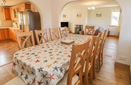 Amenities: Oil central heating with woodburning stove. Electric oven and hob, microwave, fridge/freezer, dishwasher, washer/dryer, TV with Freeview, WiFi. Fuel and power inc. in rent. Bed linen and towels inc. in rent. Spa suite with hot tub and sauna. Large games room. Ample off road parking for up to 4 cars. Surrounding lawns. Around the back of the house is a new younger children's play area. Sorry, no pets and no smoking. Shop, post office and pub 1 mile. Note: This property has a £300 Good Housekeeping Bond for all future bookings with effect from 17th January 2020. Note: Electric vehicle charging possible with £25 cost per week using outside 13 amp plug (not rapid charger)