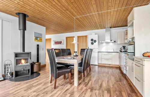 A holiday in your holiday home near Nissum Fjord on the Danish west coast offers you and your family a cosy and relaxed atmosphere. The spacious living and dining area with plenty of comfortable seating is ideal for enjoying meals together, playing games and relaxing after an eventful day. Make use of the well-equipped, open-plan kitchen to prepare delicious meals. On cooler days, the wood-burning stove provides cosy warmth.