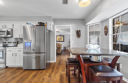 Come swim in the pool and enjoy a relaxing day at the beach, then go find somewhere to eat in the cute and historic downtown Pensacola! The home is in a great location being just 5 min from the airport, 25 minutes to Pensacola Beach, and 15 minutes to downtown Pensacola! This house boasts 4 inviting bedrooms, including 3 queen beds and 2 full beds. With 3 bathrooms, two featuring relaxing bathtubs, guests will feel right at home. The additional living room space with a full bed provides a cozy spot to unwind after a day of exploring. We hope you'll enjoy your stay at our wonderful house!