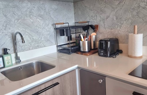 2. This 1 bedroom apartment has total area of 30 sqm and it has been well furnished with all the amenities/appliances to accommodate your stay with full kitchen (microwave, refri, electric stove, dish washing sink, toaster, rice cooker, kettle, plate, spoon, knife, wine opener, pot, fried pan and other stuff) for you to cook your light meals (do not cook heavy meal please, the smoking alarm will be alert). Espresso coffee machine with coffee powder for you to enjoy coffee whole day (available free at coffee corner at reception).