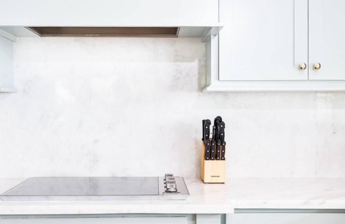 This modern kitchen has marble countertops and plenty of counter space to prepare all your family's favorite meals, while the huge dining table and large island provide plenty of seating. The stovetop is Viking induction type (appropriate pots and pans provided). Other top-of-the-line appliances include a Viking refrigerator, microwave, quiet dishwasher, Keurig coffeemaker, mixer, blender and washer/dryer. All the bedrooms and living room have smart TVs with connected local antenna. You can watch local television, or stream your own favorites. For your convenience, high speed internet is provided in this rental.