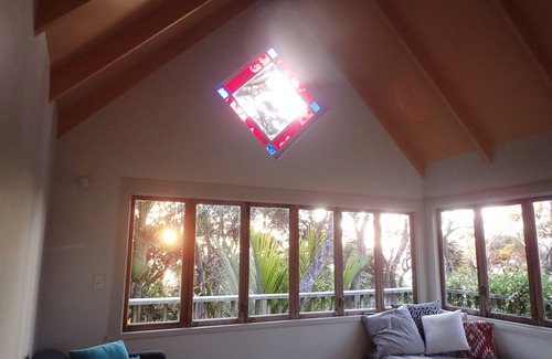 The house is a pole house set high off the ground so you look into the tree tops from the deck that runs along the front of the house. The house is two storied with an open plan design so has a spacious feel. Also means there are no doors on the two bedroom areas. There is a 3 minute walk up the hill from the road through native bush. There are nice views down to the beach. You can really unwind here and relax in this quiet setting. Reading or relaxing on the deck in the treetops is great for getting into 'Barrier time' (slow).Stay at home and cook, or go for a walk and see whats on offer at the great cafe down the road. If you want to meet some locals and have a drink then it's not far to walk to the Irish bar down the road.The house is comfortable and furnished with all you need for a holiday.The location in a more populated area of the island means you can stay there without having transport, to get to places you need on a holiday. It is easy enough to hire a car if you want to explore the island further. The house uses alternative power, as does all of Great Barrier Island. Solar power provides electricity for lights and appliances in the house. The power is 240 volt in the house, so all normal appliances can be plugged in and used. It is not possible to run heating appliances like hair dryers or hair straighteners etc, as it is too much of a tax on the power that is stored in the solar batteries. There is a gas heater, a gas caliphant for hot water and gas cooking.