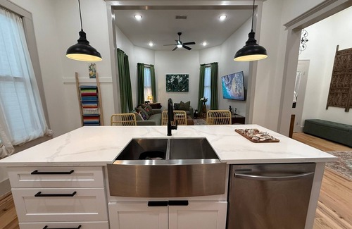 Welcome to “Badonkadonkey” in historic Bay City, Texas — a fully restored 1910 home featuring 11’ ceilings, a charming front porch, and back deck with smoker BBQ. This unique retreat accommodates up to 6 adults with 3 bedrooms, 2 full baths, a full kitchen, laundry, and a generous living room. For a playful touch, enjoy the one of a kind donkey-themed parlor!
