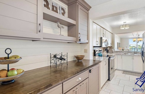 Enjoy a peaceful retreat at Bahia Vista 12-442, a bright and beautifully decorated 4th-floor condo in Isla Del Sol, offering stunning views of Don CeSar and Boca Ciega Bay. This condo features beachy blue and green tones and a spacious balcony, perfect for watching boat parades and spectacular sunsets. Sleeping 4 guests, it offers a new king bed in the master bedroom, twin beds in the guest room, two flat-screen TVs, free Wi-Fi, and a recently renovated kitchen with new cabinetry and countertops.