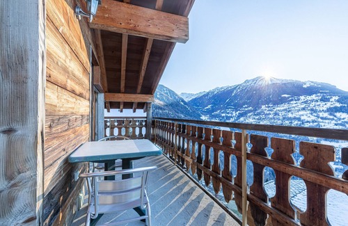 Sleep in this cosy apartment, in a ski resort, with a breathtaking view of the Rhone valley.