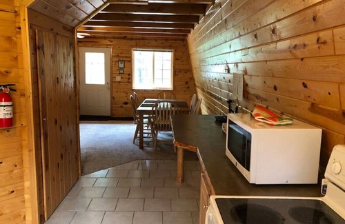 The kitchen is equipped with all the basic cooking utensils and supplies you'll need, along with plenty of dining space for a small group. WiFi, towels, sheets, toilet paper, paper towels, are included without extra fees. Parking space for a couple vehicles and and room for ATV/Snowmobile trailers year round! (RVs and Camper trailers not allowed)