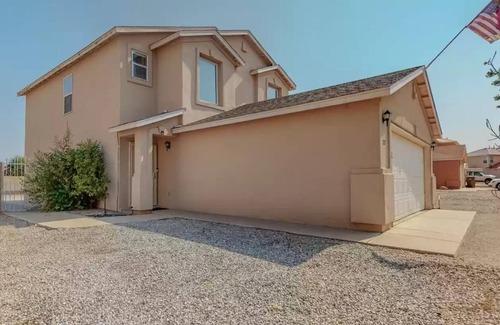 Comfortable North Valley home that holds 5 people the lot sits on a large lot with back yard access! Great views and 4 miles to Ballon Fiesta Park. Close to Steel Bender Brewery. The house has Refrigerated air, granite kitchen countertops, 3 bedroom with 2 bathrooms and 1/2 bathroom. 2 Queen beds and one single bed. Microwave and gas range. Great open floorplan with separate space for office. Large Master bedroom with tons of closet space, full bath dbl sinks and granite countertops. Spacious back yard with beautiful views. Just minutes away from the Rail Runner train station and you can go visit Santa Fe.