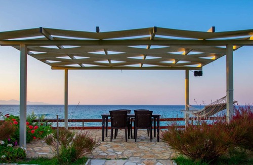 Lovely fully equipped spaces right on the water with a spacious lawn and private parking, set on the quiet beachside area of Ammoudi.