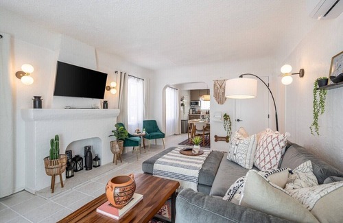 The front door opens to a cozy, yet spacious, open floor plan with carefully curated furniture and decor. This 1930s home has been updated with modern touches including a multi-zone split AC system and dimmable LED lights so you can set the mood that is right for you at any time of the day 💡