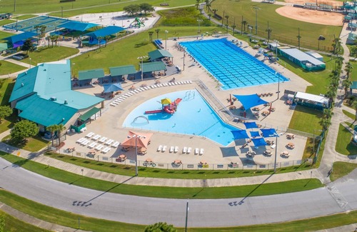 No, this Holiday Beach cottage does not have a swimming pool. Check the Facility Overview section for details about the pool and other available facilities.