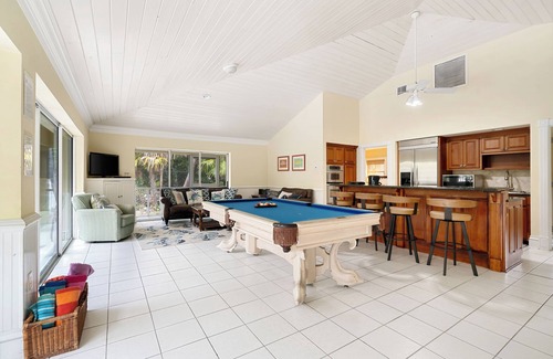 When it's time to unwind, dive into the private pool or soak in the bubbling hot tub, both perfect for relaxing under the Florida sun. Stay connected with the property's high-speed WiFi, or challenge your friends to a game of pool in the dedicated game room. For those seeking adventure, Sombrero Beach and Curry Hammock State Park are just a short drive away, offering endless opportunities for exploration.