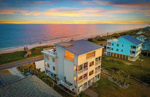 Beachfront Luxury/Rooftop Terrace/HotTub/6BR is located in Sneads Ferry. Beachfront Luxury/Rooftop Terrace/HotTub/6BR provides accommodation, featuring Internet, TV, Bedding/Linens, among other amenities. This House features Internet, TV, Bedding/Linens, to make your stay a comfortable one.