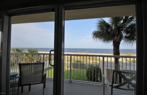 Beautiful ocean front condo that was completely remodeled in August 2018. This 2 bedroom and 2 bath condo has breathtaking unobstructed views of the white sand beach and ocean. You cannot get any closer to the beach than this unit. Paradise awaits you as you walk out on to the large wrap around balcony. The guest bedroom even has its own private balcony overlooking the beach and ocean. This condo is a short walk from all the restaurants and shopping located in Jacksonville Beach, Fl. We provide all the amenities you will need to make your getaway the best it can be.