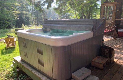 While the Wildlife Refuge has public hikers during open hours between 10 am and 4 pm, the Refuge is all yours after 4 pm closing. Sit around the campfire or walk down to the West Branch of the Ausable River, and use our hot tub, outside wood sauna, and then the strong in spirit can go jump in the lake! Fish, swim and use our canoes and kayaks along the Ausable, which in this area is also called Lake Everest. Lucky hikers and kayakers have spotted moose, bear, coywolf, fox, fisher and eagles, as well as songbirds and any bird of prey you'll find in the Adirondacks, from owls to hawks to falcons and osprey, in the sloughs, or along the two miles of family friendly hiking trails in the 50 acre Adirondack Wildlife Refuge.