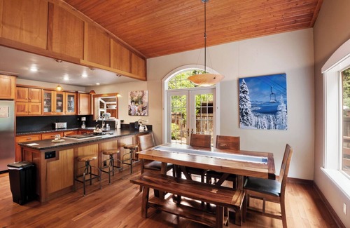 In winter, the wood-burning stove provides a cozy glow after a day on the slopes that are close (Alpine Meadows, Palisades, and Homewood), while the primary suite's steam shower and outdoor hot tub offers the perfect way to soothe tired ski muscles. With level entry for easy year-round access, Bearadise Cabin blends mountain comfort with thoughtful touches of luxury.