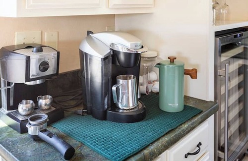 This is a vacationers dream with lots of outdoor patios set amongst plush gardens and trees with vineyards bordering on two sides. This 1.8 acre property also has a lighted bocce court, hot and cool tub, two BBQs, etc. Open and spacious floor plan offers lots windows and french doors and a large dining table with an island in full kitchen. Plenty of sleeping and work space options with 2 kings, 2 queens and a sofa bed, plus 3 desks. Enjoy beautiful sunrises and sunsets and walks past vineyards and farm animals in the neighborhood. Kid and dog friendly. Guests will have everything they need for a comfortable stay. We look forward to welcoming you to our vineyard retreat.
