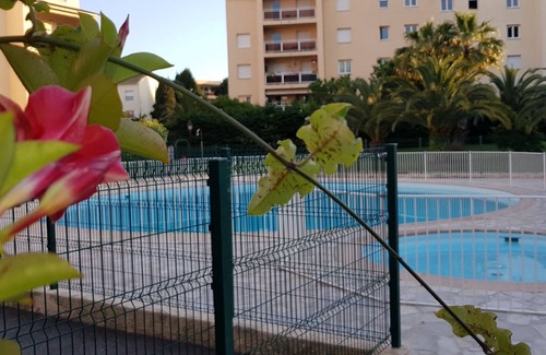 On the first floor in a secure residence with pool, air-conditioned apartment comfortable spacious, quiet and pleasant, living room / kitchen, 2 bedrooms, 2 bathrooms (toilet, shower and bath), terrace, garage in the basement. Fully equipped kitchen, American fridge, oven, hood, dishwasher, washing machine. Wifi, computer with internet access, TV in the bedrooms and in the living room. 3 Kms from the center of Antibes and the beaches of Juan-les-pins. Bus stop 300 meters. Nearby: - Sea, Mercantour, Marineland, Principality of Monaco, Nice International Airport, Antibes TGV station, Shopping centers. Bedding and house linen provided. Minimum stay of 5 nights. Smoking allowed on the terrace.