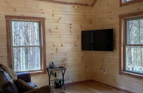 This newly built cabin has a very private setting tucked away in the pines. This cabin is beautifully furnished and provides a very cozy atmosphere inside with cozy fireplace (propane stand alone stove) in one corner with love seat and recliner. Downstairs is a small bedroom with a day bed and upstairs is two nice bedrooms with with a queen bed in each one. Spacious kitchen that is fully equipped to prepare and have your meals. You are going to love spending a few days in this private cabin. The cabin is priced for 2 people. Additional guest will be charged $10 per night each unless agreed ahead of time by host.
