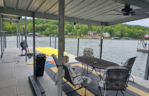 Beautiful 4 bedroom 2 bathroom lakeside cabin with large dock and sandy beach. | House in Barnett, MO