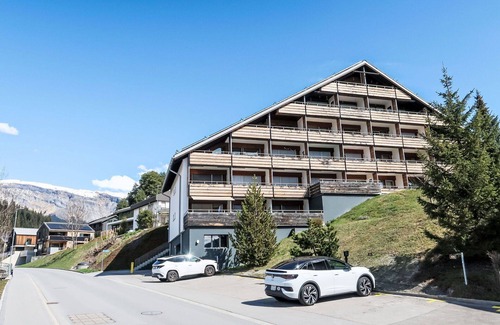 Cosy apartment house "La Prada" situated at 1'020 m above sea level in Laax, Switzerland. This six-story property offers a shared indoor pool (available seasonally from July 1 to October 20 and December 1 to April 30), a children's playground, and a sauna (extra cost). Enjoy the convenience of a playroom, lift, and central heating system. The apartment house features motor access and communal covered parking. Enjoy the amenities of a Swimming Pool, Yard, Internet Wifi, Parking, and EV Charging Station.