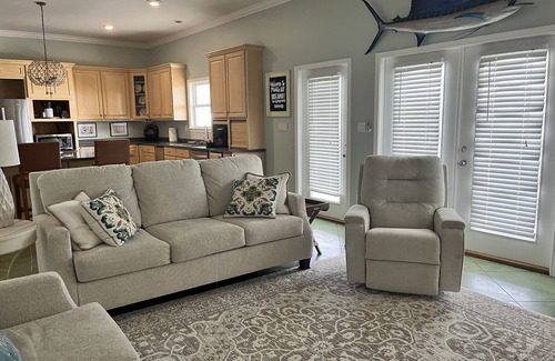 Middle Bay Hideaway is a beautiful four bedroom, two and a half bath private home that overlooks the scenic Mobile Bay. You'll enjoy incredible views from the living room, kitchen and master bedroom, but our whole families favorite area to hang out is the back porch! Enjoy your days fishing, crabbing, kayaking, boating, spending time at the beach, swimming in your own private pool, or simply relaxing and reading a good book in the porch swing. Take in the gorgeous sunrise over the bay as you enjoy your morning coffee or relax with a glass of wine while sitting by the firepit at night. We also have a private pier for fishing and crabbing. No Boat slip. We are only 2 miles from the nearest boat launch, 15 minutes from the beaches of Dauphin Island, and 5 minutes from the nearest grocery store. We offer a gourmet kitchen for those who enjoy cooking your own meals, but we are also close to many fabulous restaurants for a wonderful meal out. You will not find better seafood anywhere else! We can also spoil you, We have WiFi available for your internet needs and TV's in every bedroom. We offer Direct TV service or log-in to your streaming channels. A few of our favorite local activities is hiking the Audubon Bird Sanctuary trails on Dauphin Island, Riding bikes on the Island, touring the Dauphin Island Sea Lab, touring Fort Gaines, riding the Ferry over to Fort Morgan, Cedar Point Fishing Pier, Bellingrath Gardens and Home, and spending the day on the West End of Dauphin Island where the kids can enjoy waterslides, showers, picnic area, and chair rentals. If you love to fish, you are in for a treat. Some of the best charter fishing boats right out of Dauphin Island. Where the largest fishing rodeo is held every July. We are only 20 minutes to the nearest Walmart and about 25 minutes into Mobile. We have a brand new Top Golf 25 minutes from our home. Great for a girls weekend getaway, a guys fishing or golf trip, and family vacations. We are only about 45 minutes to the casinos of Biloxi, Ms. There is something for everyone to enjoy!!! Come stay with Middle Bay Hideaway and make memories you'll talk about for years!