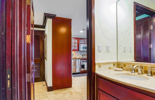 In classic Hawaiian fashion, this mountain-view condo at an oceanfront resort is just the place to let life's worries drift away with the tide. As soon as you step inside, you will be greeted by the tropical-themed decor, a spacious layout, and a beautiful kitchen fully equipped with stainless steel appliances, dark espresso wooden trim, and granite countertops. Walk through the comfortable living area and step out to the private balcony to soak up those mountain views that simply cannot be beaten. If you want even more sunshine and salty air, head down to the beautiful white-sand beach, or the large pool with water slides, lazy river, poolside restaurant, and a tiki bar to really slip into the island lifestyle. Not to mention, you can have your own peace and quiet back at home base as you soak in the jacuzzi tub!