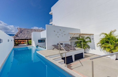 Introducing a seaside haven in Cruz de Huanacaxtle, just a short 35-minute drive from Vallarta Airport. This inviting 2-bedroom, 2-bathroom condo beckons with the allure of tranquility, only 2 blocks away from the sun-drenched beaches. Step into a cozy living room, savor culinary delights from a full kitchen, and relish the charm of shared spaces – a rooftop paradise featuring a refreshing pool, a sizzling BBQ area, and laid-back chill spots.Your coastal escape, where comfort meets coastal bliss