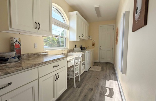 The laundry room is available for free laundry for guests to use and has a small dedicated "office area" with a built in desk and comfortable chair if you need to do work while you're here.