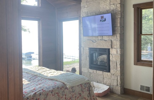 Enjoy this new lake front home. Take in the Lake views inside and out of this beautiful home. Enjoy the sandy beach and nighttime fires around the fire pit as you listen to the soothing water. This house has it all!! Gourmet kitchen, fireplace in the master suite. Downstairs fireplace and plenty of lounging room to sit back and relax!