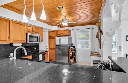 Step into this delightful hideaway and be welcomed by sunlit, open-concept living areas bursting with colorful coastal decor. Lounge on the plush sofa to stream your favorite shows on the smart TV, or enjoy your morning coffee on the well-furnished patio as the boats float by. A well-appointed kitchen boasts modern appliances, ample counter space, and everything you need to craft a delicious home-cooked meal. With ultra-high-speed internet perfect for gaming or business activities, this rental is ideal for any work-from-home professionals hoping to get a little work done vacation-style.