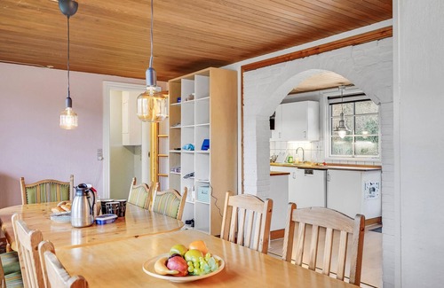 This beautiful holiday home in the south of Funen offers you everything you need for a relaxing holiday. The classic Scandinavian design creates a warm, inviting atmosphere. The light-flooded living area under the pointed roof invites you to spend cosy evenings together, while the open-plan kitchen offers you space for cooking together. Enjoy your meals on the sunny terrace with a view of the well-tended garden and the peaceful surroundings. Here it is easy to leave everyday life behind and enjoy the relaxed holiday atmosphere.