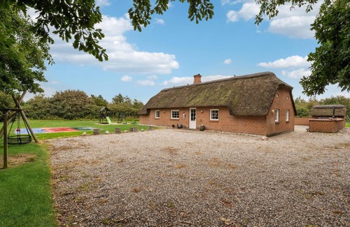 On a large plot in an old dune and plantation area between Søndervig and Thorsminde lies a rustic thatched luxury house with pool, typical for the area. In the house there are six bedrooms, three bathrooms and a cozy kitchen open to the living room. Directly in front of it, the open terrace awaits you, it is surrounded by a windbreak wall. A pool with slide, the sauna and the jacuzzi will also let you enjoy some nice hours. The surrounding area with its rich wildlife is very suitable for long hiking, biking or jogging tours on the marked trails, which lead among other things to the North Sea with a good swimming beach. Immediately in front of the sea there is a completely untouched dune area. In the surrounding area there are also smaller, varied harbors where you can enjoy the peace and visit playgrounds with the children. In Husby there is a dog forest. Also experience the beautiful harbor of the fishing village Thorsminde. There is also the jetsam museum Sct. George.