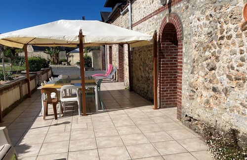 Fitted out in a brick and flint house, our gîte faces south west with an enclosed, flat garden of 1,200m2 with annexes, trees, surrounded by a hedge and not overlooked, comprising: 1 tiled terrace of 66.50m2, 1 garden table with chairs and sunbeds, 1 barbecue, 1 gazebo, 1 Mölkky game, 1 gate, 1 free parking lot next to the house.
