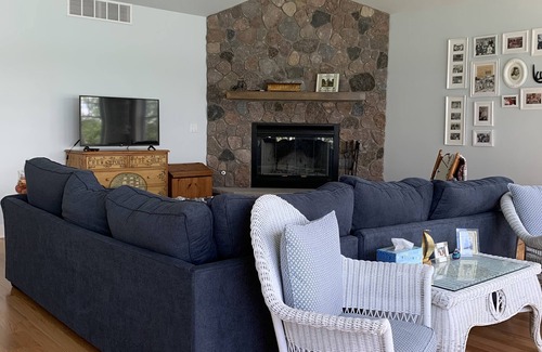 This 8-bedroom, 3.5-bathroom home comfortably sleeps up to 18 guests and is fully equipped with everything you need for a memorable stay, including a full kitchen, cozy living room with a fireplace, high-speed Wi-Fi, and a private pier. Enjoy swimming, paddle boarding, kayaking (kayaks and paddle boards provided!), or just lounging lakeside with a good book.