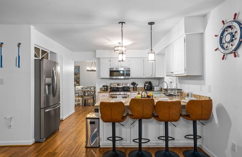The home is lakefront, tastefully decorated nautical themed home. Brand new bedding, mattresses, furniture in a comfortable layout. Private lake access from your backyard. The home is professionally managed by me, an experienced Superhost for 3 years in a row w/ over 700 reviews.