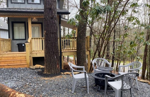 This unique tiny cabin is located right off the shores of beautiful Lake Nantahala. Although small, this cabin offers all the comforts of home. Each cabin has a full sized bed that can sleep two adults plus a sleeper sofa that can sleep two children. Our cabins also have a full bathroom with shower, kitchenette with a coffee maker, stove top, mini fridge, and microwave, outdoor seating, gas barbecue, and a fire pit.