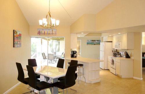 Some of the features included are 2 family rooms to enjoy, all 3 bedrooms have beautiful canal water views, bright kitchen facing beautiful waterfront, double sinks in each bathroom (both have larger than usual stand-up shower), 2 convertible sofa beds in the family & living rooms, high-powered pool heater, decorated lanai, and southern facing backyard beach to read & relax with a glass of wine/beer/cocktail enjoying the endless breeze coming from extended water canals or seeing boats passing by! Flexible sleeping arrangement -- master bedroom king size bed sleeps 2, guest bedroom #1 queen sleeps 2, guest bedroom #2 twin beds sleep 2, living room convertible sofa bed sleeps 1, and family room convertible sofa bed sleeps 1.