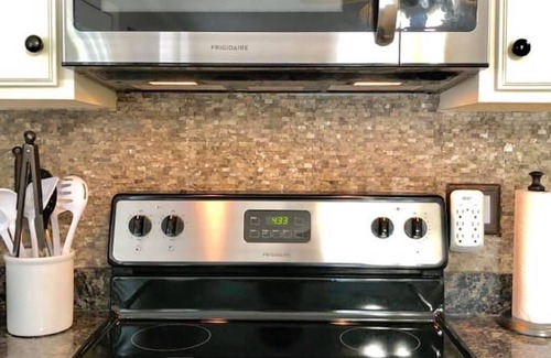 We love to cook, and the kitchen is stocked with dishes, pans, a selection of spices and condiments, a Keurig as well as a drip coffee pot (Coffee is important!) Seating for 6 in the eat in kitchen and 2 more at the island. An open concept floor plan allowing everyone to congregate and talk. The living room has plenty of seating with a couch and 2 recliners. Cable tv, highspeed internet, and a selection of movies and board games provide entertainment when everyone has had their fill of the sun.