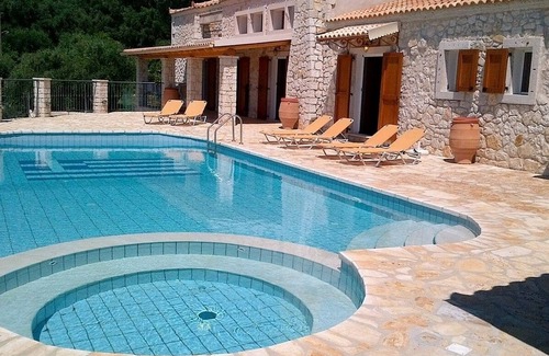 Villa Lykaios was originally an old olive press that has been restored by the finest of craftsmen using local materials, it's nestled in the hills above the sleepy hamlet of Nissaki providing quality accommodation and stunning sea views. The design and the overall fixtures and fittings will not disappoint and although air conditioned the stone walls create a cool haven to escape the heat of the summer sun. Distributed over a single storey there are 4 bedrooms with en-suite bathrooms, a separate guest bathroom plus a gallery bedroom for 3, maximum occupancy for 11 people. The farmhouse kitchen has been fitted with every electrical appliance/gadget imaginable including a a large American style fridge/freezer, Aga type cooker, microwave, stone pizza oven, dishwasher etc and dining table that seats 10. The lounge has a huge vaulted ceiling with 365 degree gallery, fireplace, Grand Piano, 50" TV with Sky satellite system, DVD (Greek/European) and locally hand crafted wrought iron furniture plus a stone staircase that leads up to the gallery area. The whole property is private, secure and walled and accessed via electric gates to private gardens with flowering shrubs, fruit trees and homegrown vegetables. The private swimming pool includes a separate Jacuzzi section and is surrounded by patio areas with sun loungers and parasols, there is also a covered barbecue with kitchen area and stone table for meals outdoors which is perfectly placed for enjoying the spectacular sea views. Absolutely no expense has been spared creating a haven at Villa Lykaios and it's a perfect choice for those looking for a fantastic property in a peaceful location.