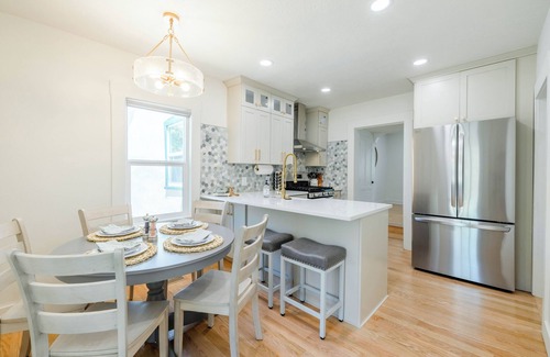 Relax and gather your family in this beautifully remodeled home. You'll enjoy a modern, fully stocked kitchen, cozy new beds, spacious living areas, a private yard with outdoor games, and a covered patio with a table and BBQ for gathering.