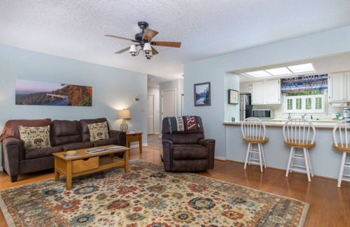 When you walk in the front door of Bent Creek 9, resist the urge to walk right out to the back deck. Instead, take in the warm ambiance of this well-appointed home, featuring a fully-equipped kitchen with modern stainless steel appliances for effortless cooking. You'll notice everything is on one level here. Each bedroom has a comfortable king-size bed and a private bath, one having a walk-in shower. While Rumblng Bald will be your home base for adventure, the back deck of Bent Creek 9 will be your retreat for basking in the area's natural beauty. You have left your normal cares behind, but, if you must, you can connect with friends and family with a dedicated WIFI.