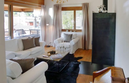 "Bergidyll", 3-room apartment 85 m2, on the top floor. Comfortable and cosy furnishings: living/dining room with open-hearth fireplace and cable TV (flat screen). Exit to the balcony. 1 room with 1 double bed (160 cm, length 200 cm). 1 room with 1 french bed (140 cm, length 200 cm). Open kitchen (oven, dishwasher, 4 ceramic glass hob hotplates, toaster, kettle, freezer, electric coffee machine, steamer) with dining table. Shower/WC. Floor heating. Balcony, south facing position. Balcony furniture. Beautiful view of the mountains, the countryside and the resort. Facilities: Internet (WiFi, free). Garage (1 car) at the house. Please note: non-smokers only.