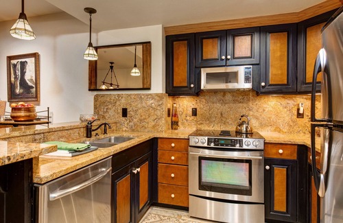 Then come inside to the warm, welcoming luxuries of one of the finest-appointed 2 bedroom 2 bath non-smoking lodgings in historic Park City. Snuggle down by the gas fireplace, both bedrooms have Sony - 49" Class (48.5" Diag.) - LED - 2160p - Smart - 4K Ultra HD TV with High Dynamic Range. Upgrated beds to Simmons Beautyrest World Class Resonance 13.5" Plush Mattresses. Living room now has the opulent recessed in-wall Sony - 55" Class (54.6" Diag.) - LED - 2160p - Smart - 4K Ultra HD TV with High Dynamic Range with theater audio surround sound, a fully-equipped gourmet kitchen, beautiful original oil paintings, distressed Town Lift Condo, Park City, Utah Hickory floors, burnished oil-rubbed hardware, with panoramic bay window views overlooking historic Park City Main Street shopping, galleries and restaurants.