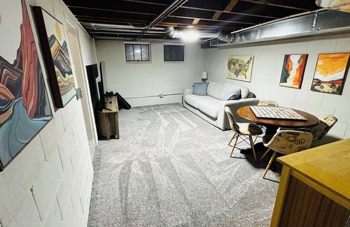 Located just 15 minutes to the airport/Downtown and about a mile to Benson or Dundee in either direction. The house has fiber-optic streaming Wifi combined with a 70” Living Room TV and 65” Basement TV.