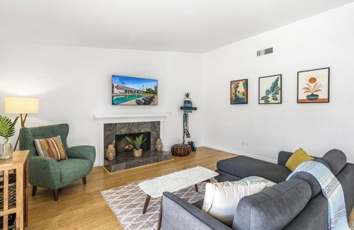 Hidden off the main city thoroughfares, this home sits in the Los Compadres neighborhood of Palm Springs. Tucked away in this historic neighborhood, the sprawling space is both quiet and convenient to all places of interest. A short drive to Smoke Tree Commons will lead you to many shopping and dining options or a quick 10-min drive west brings you to Downtown Palm Springs.