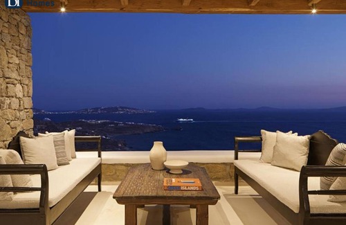 This Mykonos Villa is a fully renovated Μykonian luxury property situated in the area of Houlakia, located just 5.5 km from the picturesque Mykonos Town. It enjoys a magnificent view of the ancient Delos & Rhenia islands, as well as the Tinos Island, while the panoramic sea and sunset view will take your breath away. A modern, state-of-the-art property where guests enjoy a bohemian style along with the
