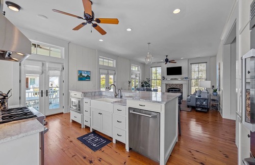 Big Red is located in the Master Planned coastal community of River Dunes in the Chapel Square. This four bedroom, five bath home allows for quick access to the River Dunes Harbor Club, amenities, and Grace Harbor. Big Red features a kitchen with stainless steel Viking appliances, coffee maker, utensils, serving dishes, plates and basic cookware. You will also find a welcoming front porch, one car garage, and screened in outdoor dining area. As you enter through the French front doors you will notice the reclaimed heart pine flooring, open downstairs floor plan, and high ceilings. On the first floor your will find three bedrooms - one king bed, one queen bed and one set of bunk beds - each with their own private bath. The second floor has a bunk room with two full size beds built into the dormers with space to entertain and relax as well. The property does have WIFI and streaming services for guests to use. The guest stay will come with linens and towels included.