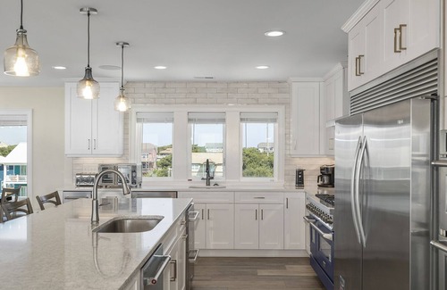 When it's time to sizzle some steaks, you'll find not one but two gas grills ready to sizzle up a storm. And dining options? Take your pick from numerous indoor and outdoor seating areas. Enjoy the sea breeze on furnished and covered decks or take refuge in the gazebo. Enjoy laying by the pool, which can be heated for an additional $725/week + tax. The landscaping is pro-level, and we're pet-friendly with LVP flooring throughout.