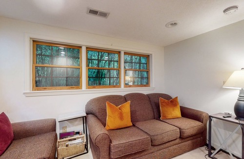 Affectionately known as Bird House, this cozy second-floor 1BR unit is part of a duplex cottage. Offering everything needed for a peaceful mountain getaway, youll enjoy modern updates such as recessed lighting and a smart TV. Outside, a flagstone patio offers ample seating and a gas grill, all surrounded by lush forest.